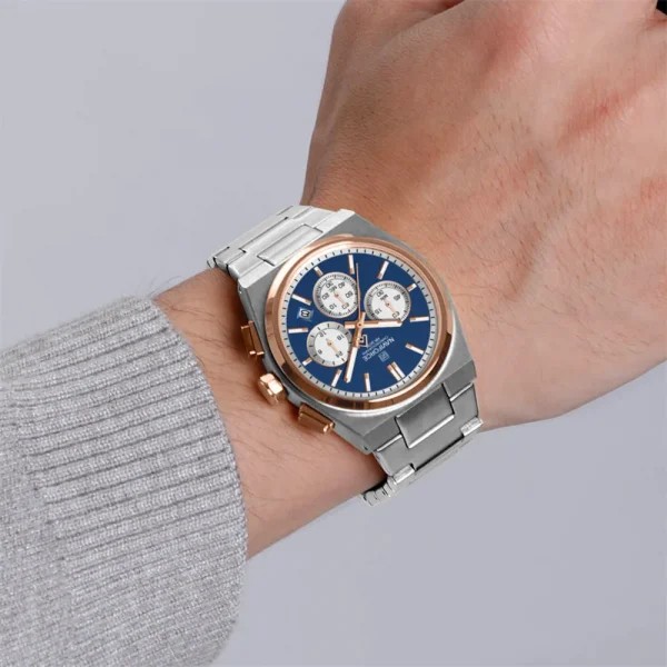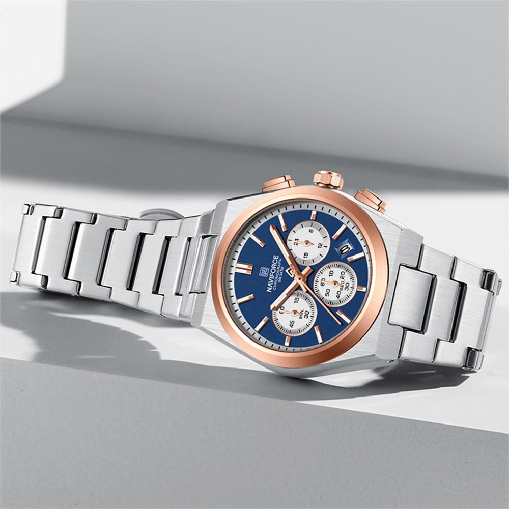 The Naviforce NF 8048 for Men is a sophisticated timepiece with a 40 mm dial, encased in durable mineral glass. This watch features a stainless steel strap and a quartz movement originating from Japan. It offers digital and analog displays, a calendar, and a light. With a water resistance of up to 30m, it’s designed for everyday use. A blend of style and functionality, it’s the perfect accessory for the modern man.